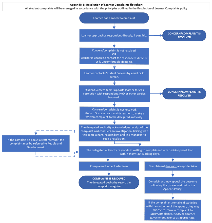 Approved policies and procedures are always intended to comply and conform with the current Ministry of Education, Tertiary Education Commission (TEC), New Zealand Qualifications Authority (NZQA,) and other external agency legislation requirements and procedures.